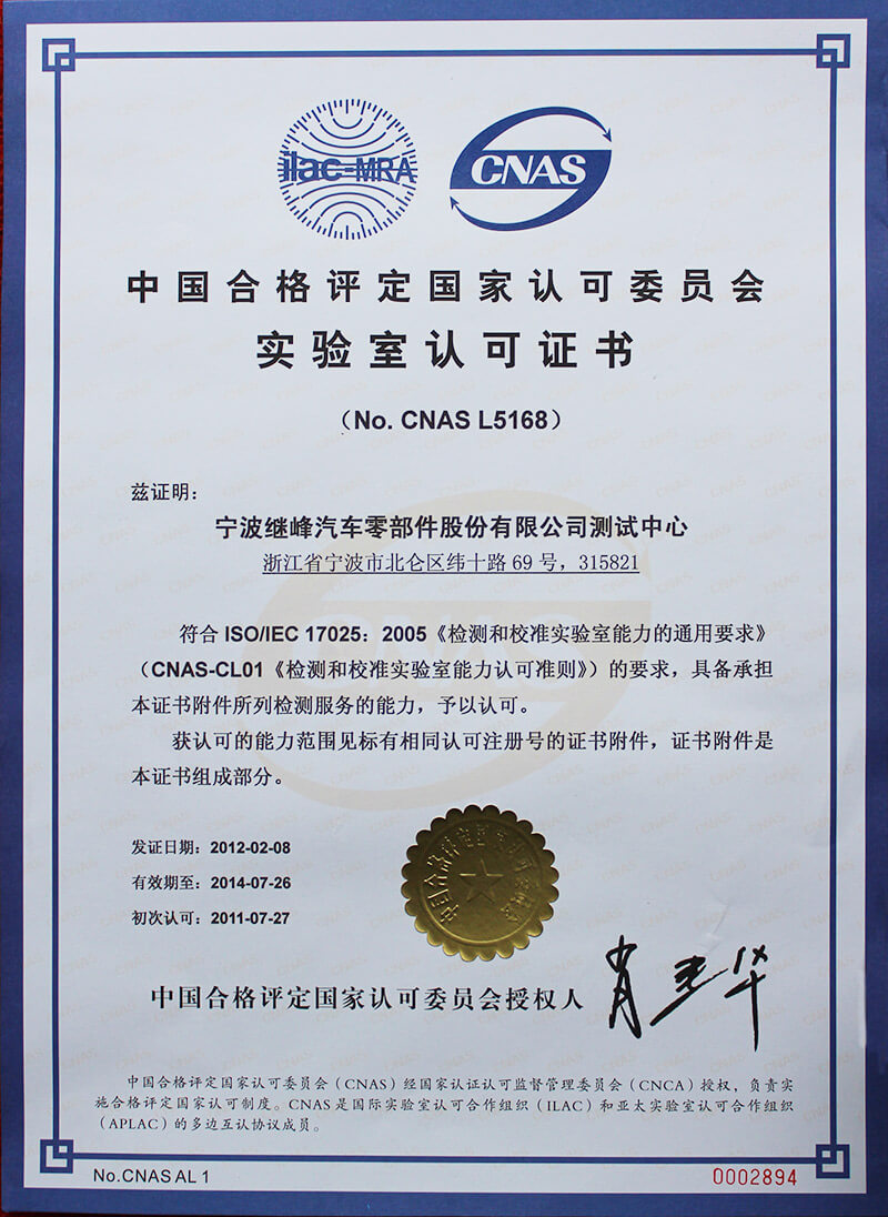 公司實(shí)驗(yàn)室通過(guò)國(guó)家認(rèn)可委ISO17025國(guó)家實(shí)驗(yàn)室認(rèn)可;