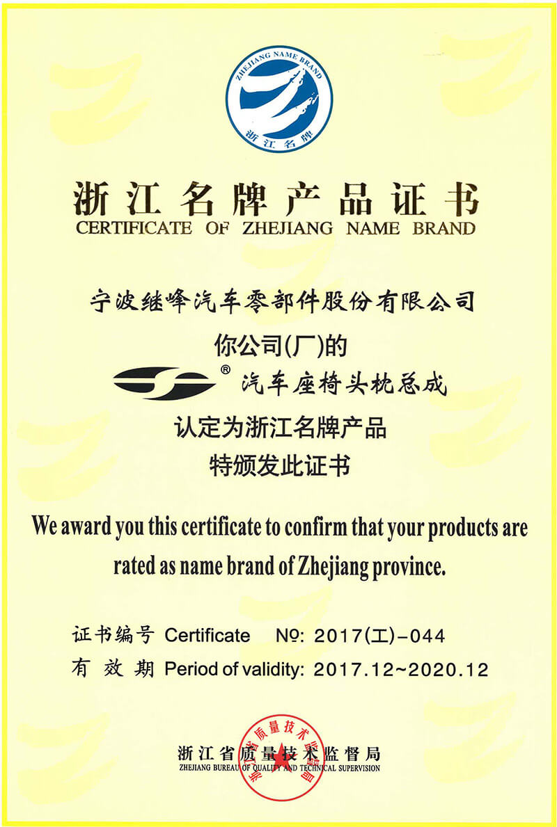 公司產(chǎn)品榮獲“浙江名牌產(chǎn)品”榮譽(yù)稱號(hào);