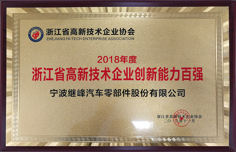 公司榮獲“2018年度浙江省高新技術(shù)企業(yè)創(chuàng)新能力百?gòu)?qiáng)”榮譽(yù)稱號(hào);